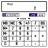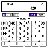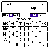 644と入力し、"8" を選びます。 "=" を押します。 左側のプッシュボタンの "10" を選びます。 すると値が10進数で表示されます。 表示形式の変更は単位の換算とほぼ一緒です。 ちなみに、A〜Fの文字を入力すると 自動的に16進数と判断します。