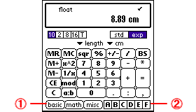 - 画面に表示しきれなかった機能ボタンを呼び出します。 "basic" はよく使われる基本的な機能、 "math" は数学関数、 "misc" はその他の便利な機能です。